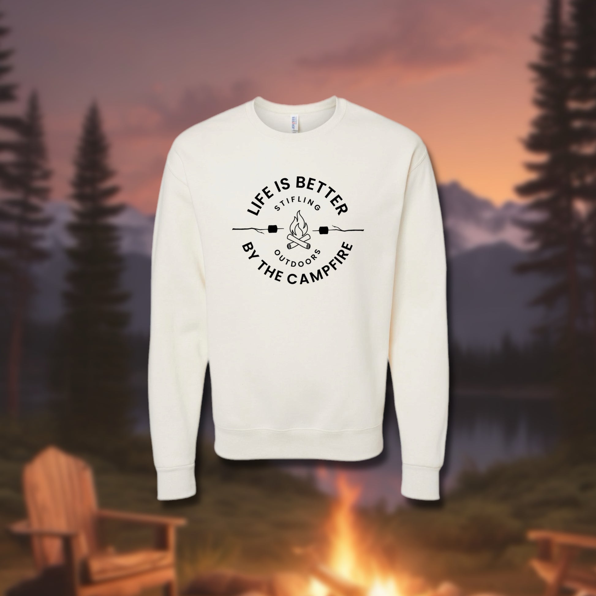 “Life is better by the Campfire” pullover in Oat Milk