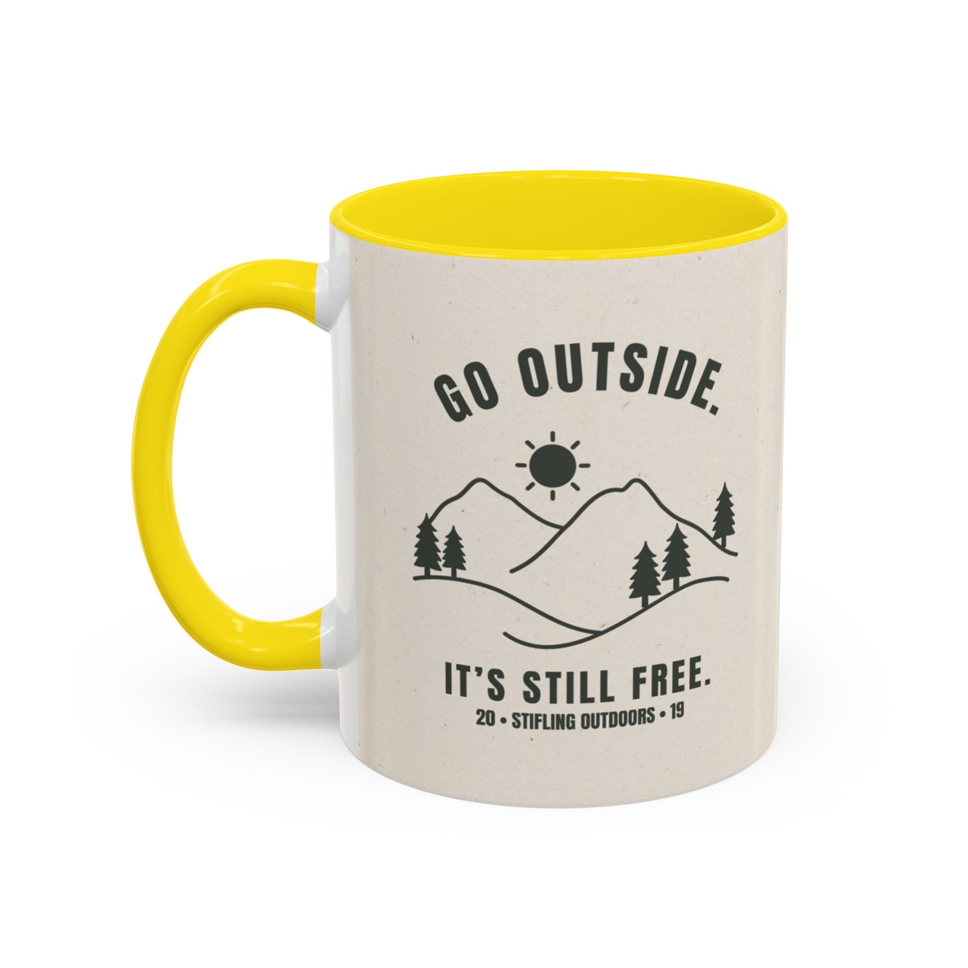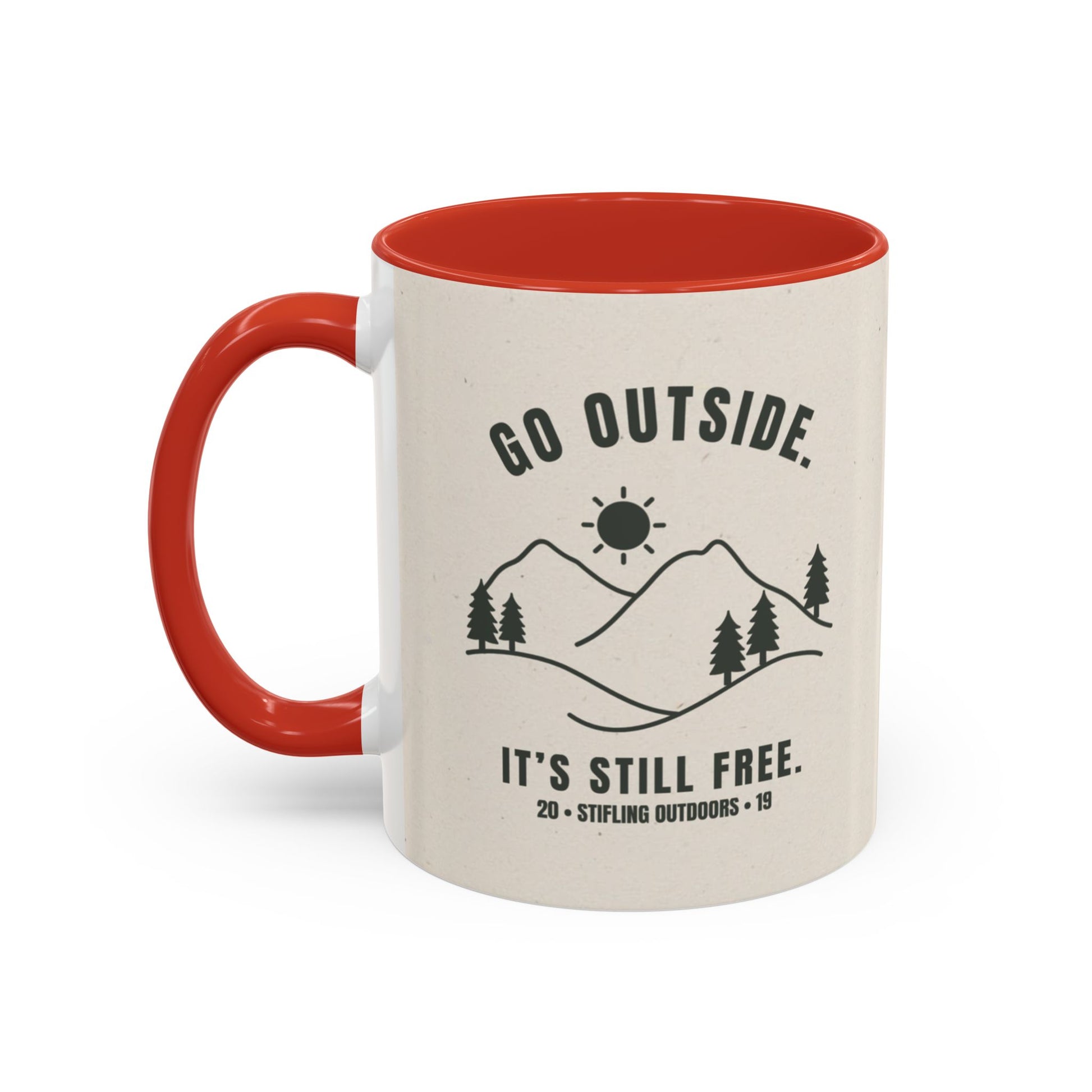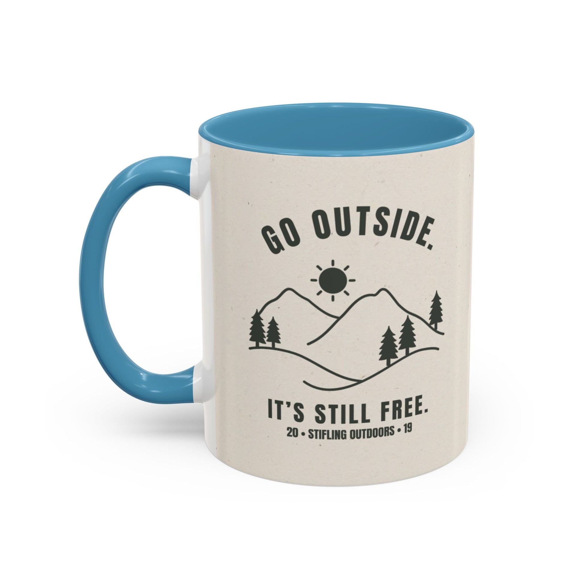 Mug- 'Go Outside. It's Still Free.' Mountain Silhouette Design