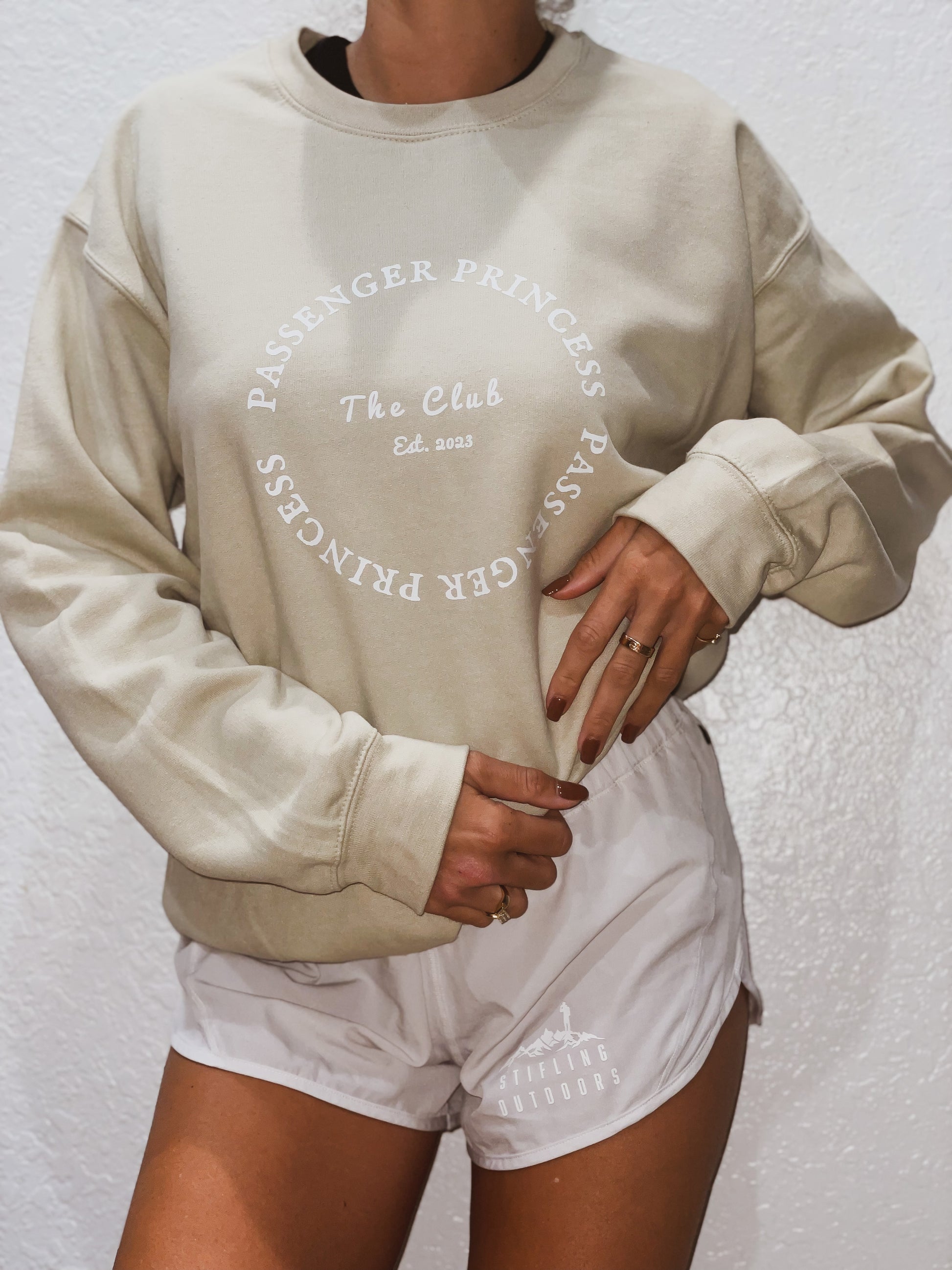 Bring comfort on your travels with this Stifling Outdoors cotton-blend fleece fabric. It’s a bone-beige colored lightweight pullover with the white Passenger Princess logo on the front.